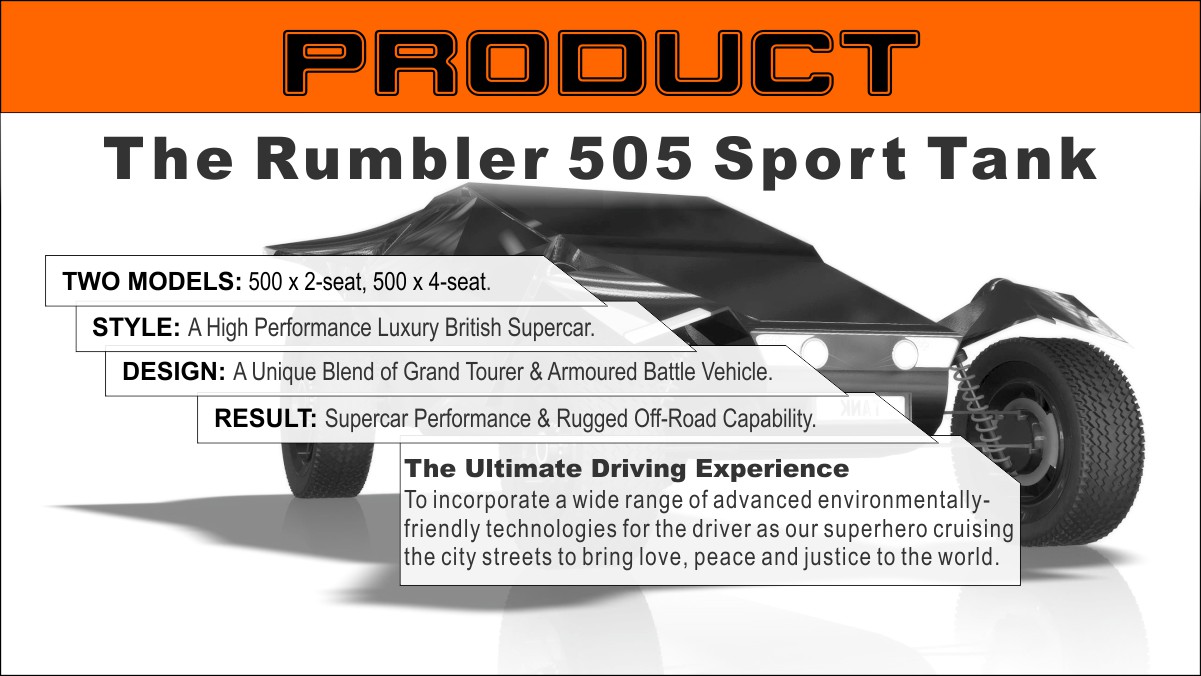 Learn the proposition and benefits, savour the delight of joining the team and sharing the dream. Learn how your money will be used, when and where it will be returned and your profit from the Rumbler 505 Sport Tank Limited Edition.